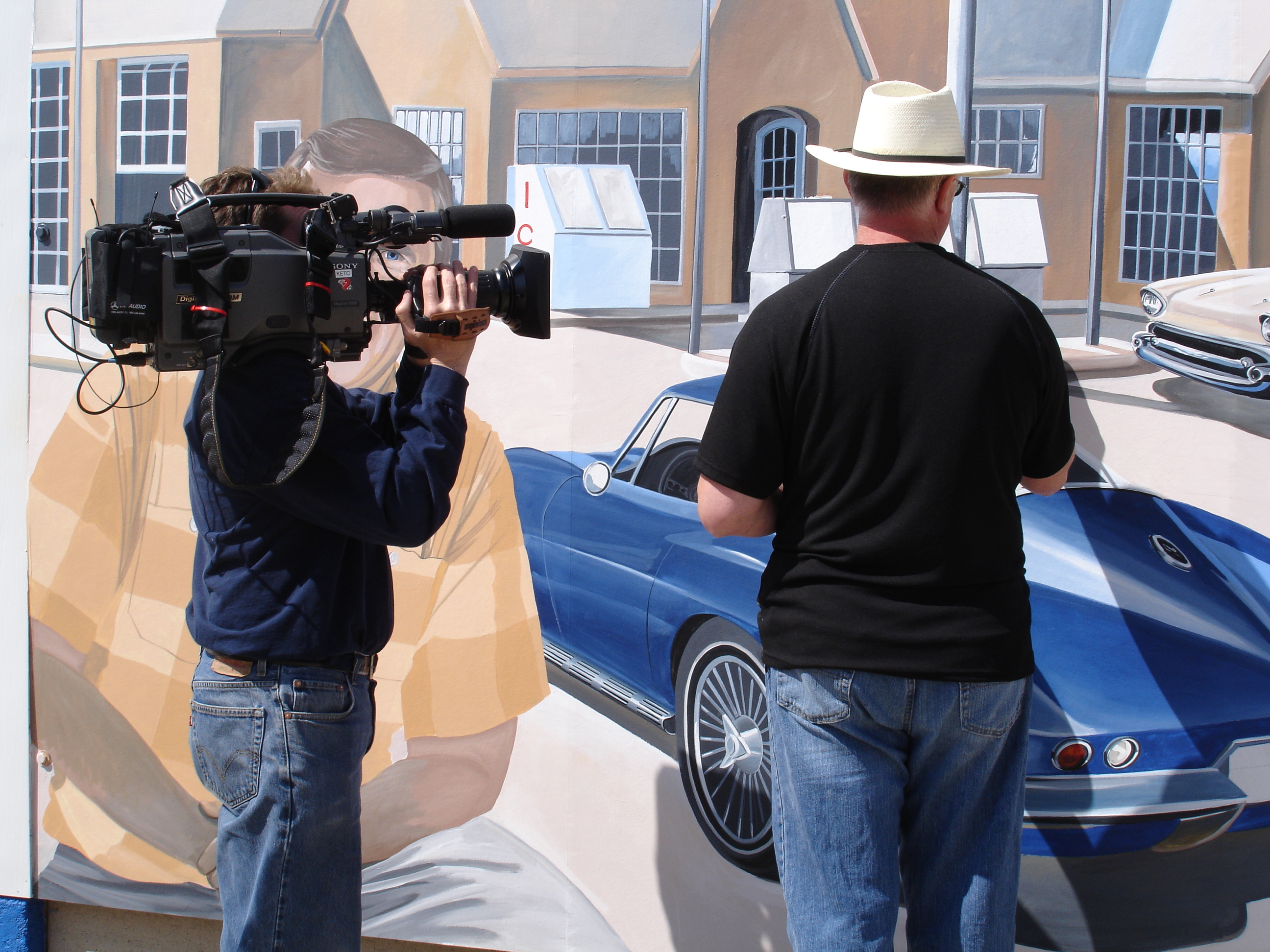 This is peak season for mural painting. While most of my murals are exterior the weather is perfect now for new public art. I have new projects in the bidding process and others in the scheduling stage. It is sometimes difficult painting outdoors in Missouri. Afternoon thunderstorms, heat and humidity can take its toll on me and the painting. While additives are used to extend drying time on the paint and cool refreshments are needed by me, northern exposures and overcast days are my friends. The few cool breaks we have enjoyed this sumer are rare and valuable. It allows for early starts and extended painting hours.
