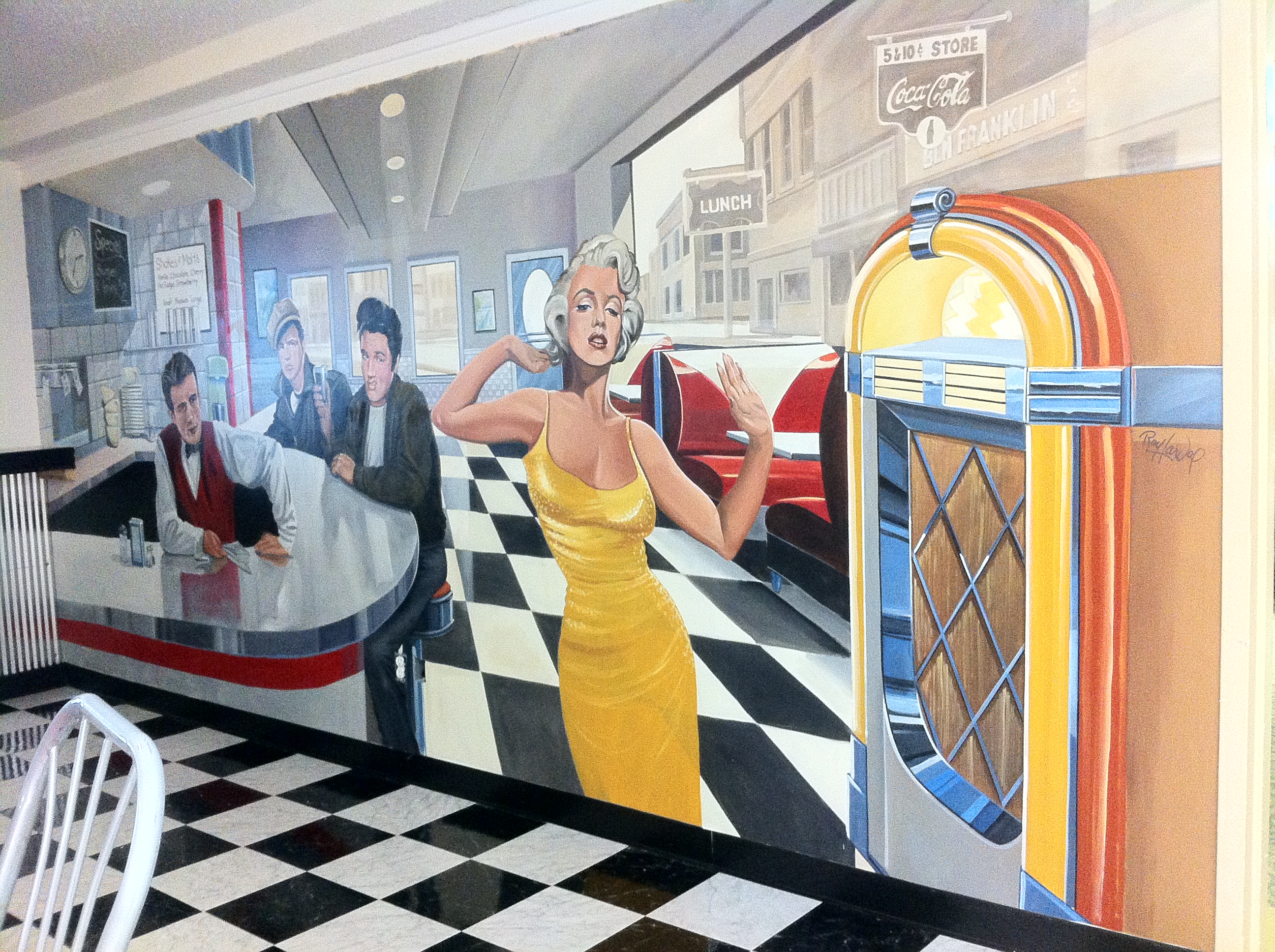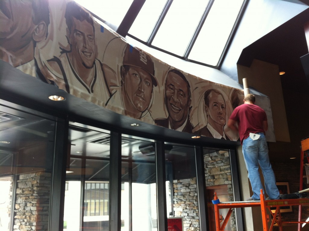I have created artwork all around the St. Louis and Midwest area for over thirty years in a freelance capacity. I have painted over three hundred murals for commercial, residential and public use. I have created and painted hundreds of decorative paint finishes and looks for residential and commercial use. I have also designed and painted large canvas backdrops for theater, trade show and photo applications. Branding such a diverse talent has been difficult at times mainly due to a customers limited focus. Who would call a muralist when a great paint finish is what is needed on an office lobby? Who would call a house painter to create a beautiful original custom art mural? My clients do!