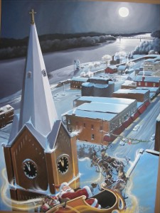 The art shown here is the painting ” T’was the Night Before Christmas Over Washington” painted in 2007.