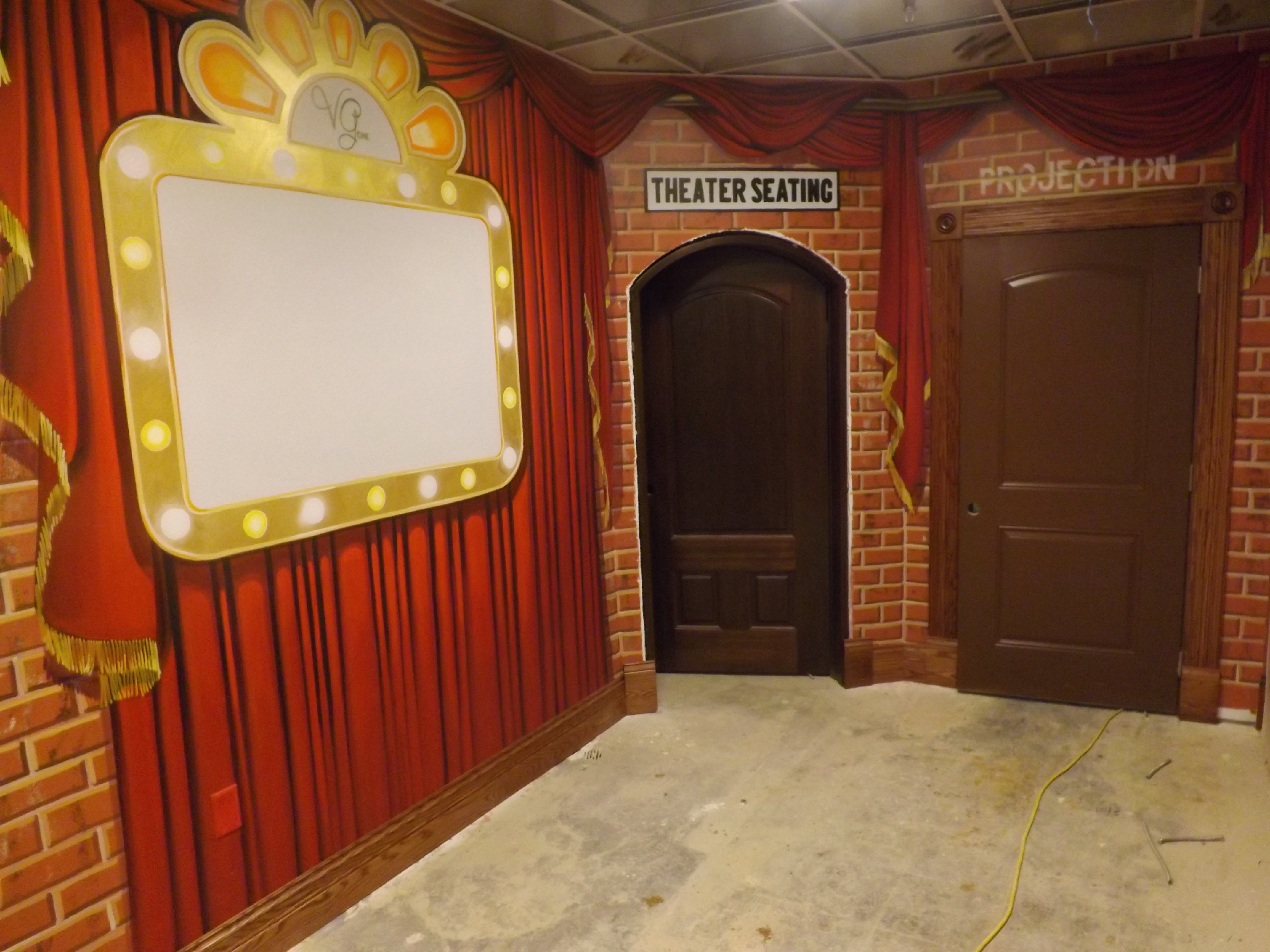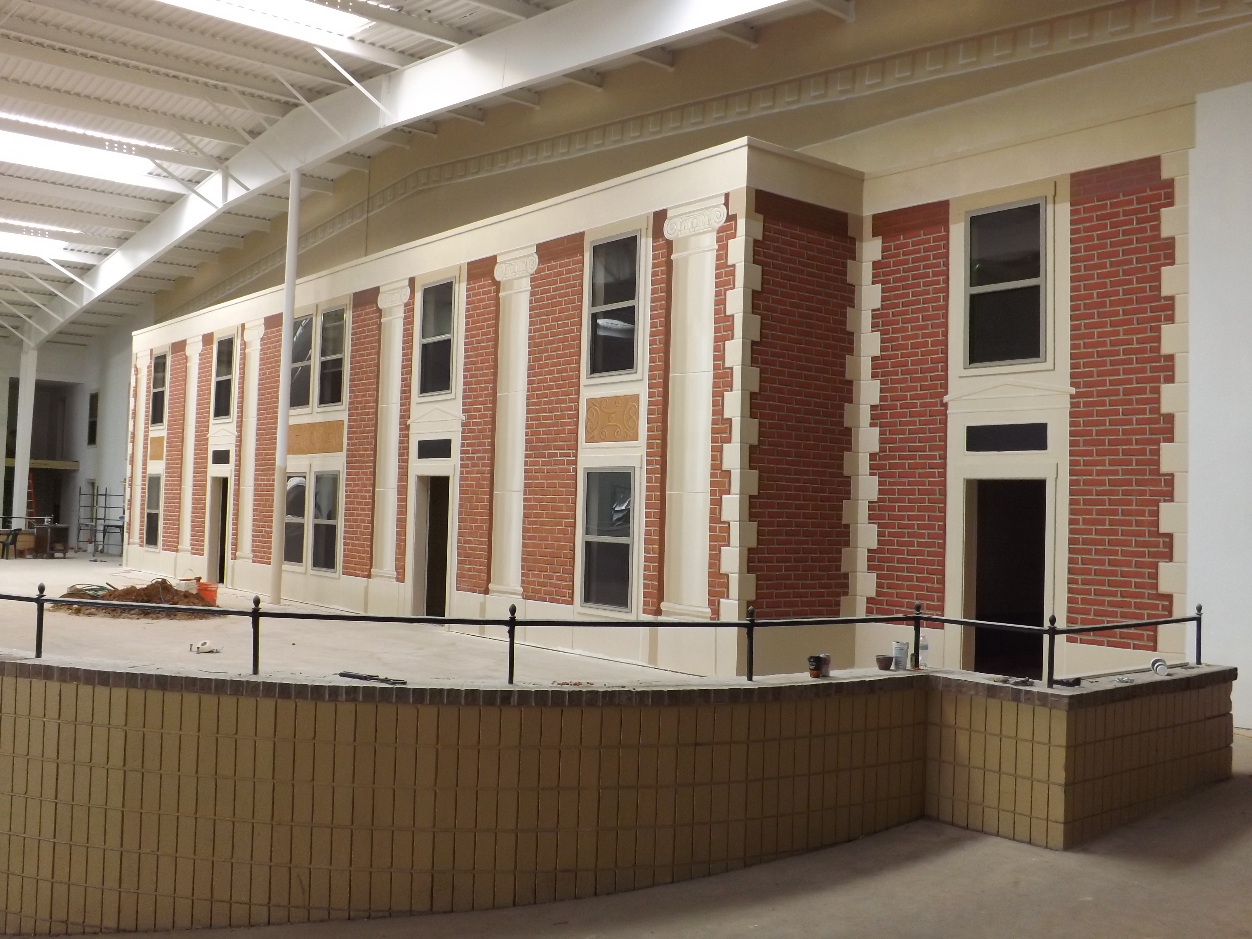 The project at this point has progressed half way through the contracted twelve month term for completion. There are two remaining 200 foot plus walls in the atrium, a chapel ceiling and a few more storefronts to complete before the end of December. The job has developed it’s own rhythm of progress and momentum is carrying it through. I look forward to posting photos of actual completed rooms but at this point some illustrations are in front of raw floors, trim-less doors and missing lights. Until that day comes please look around at these progress photos.
